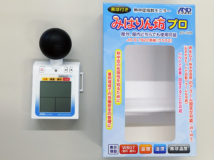 携帯型WBGT値計測器を現場に配置し、測定値が厳重警戒値に達した場合は作業を休止し休憩するようにしています。